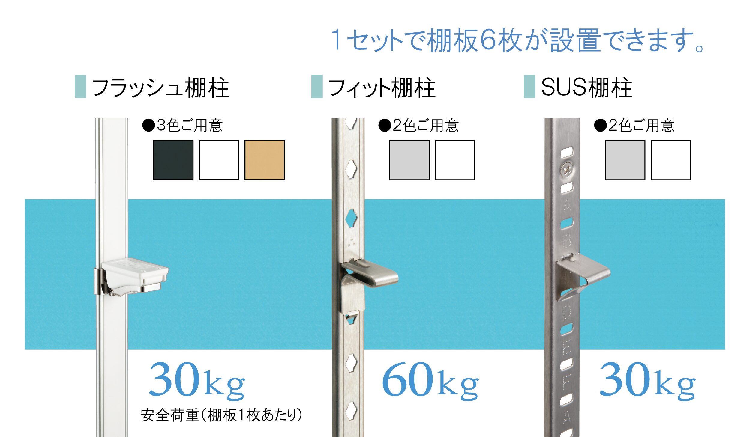 棚柱:ステンレス 板厚:0.8mm No.4仕上/ホワイト焼付塗装