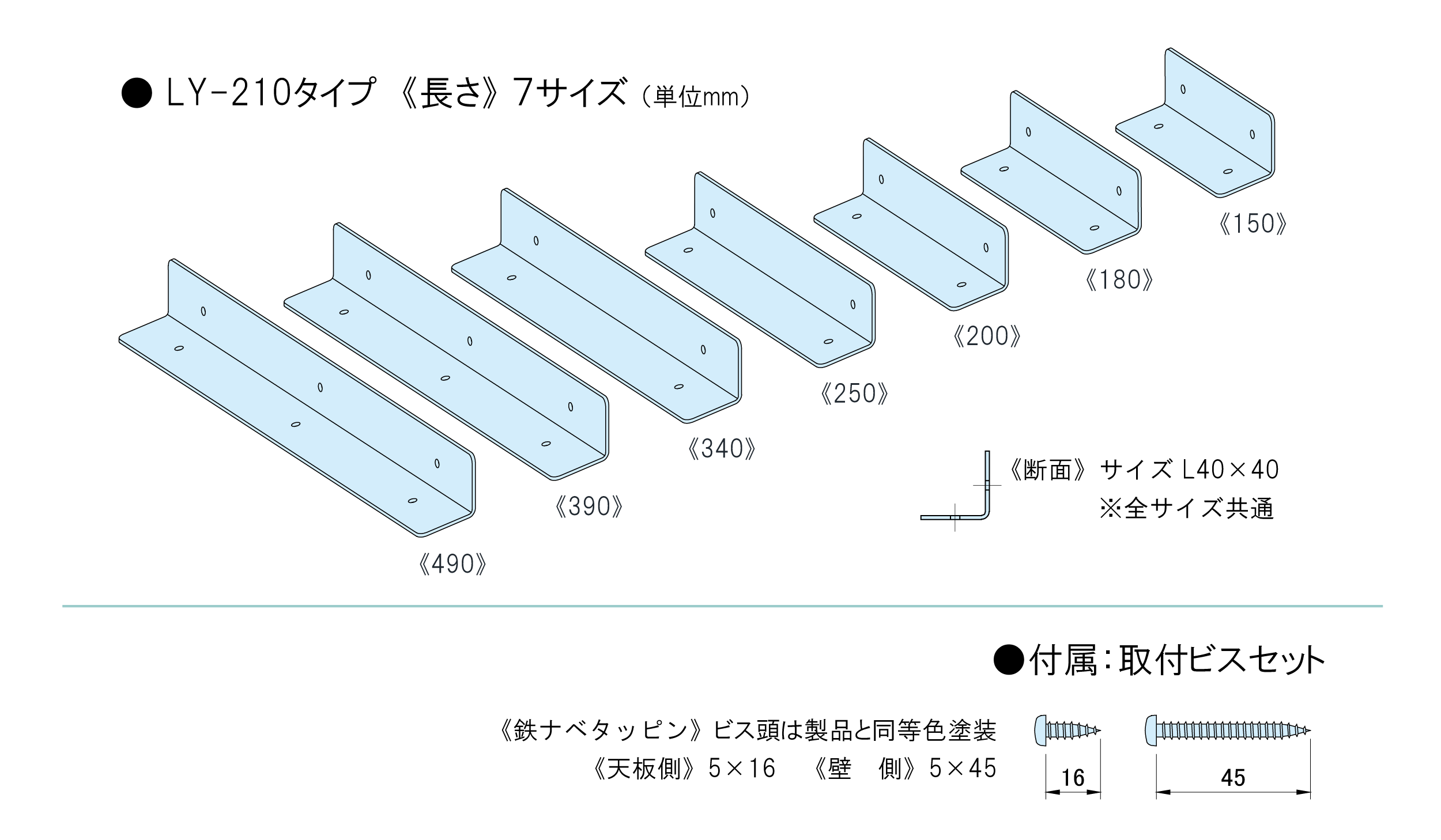 | 長さ(mm) | 150 | 180 | 200 | 250 | 340 | 390 | 490 |