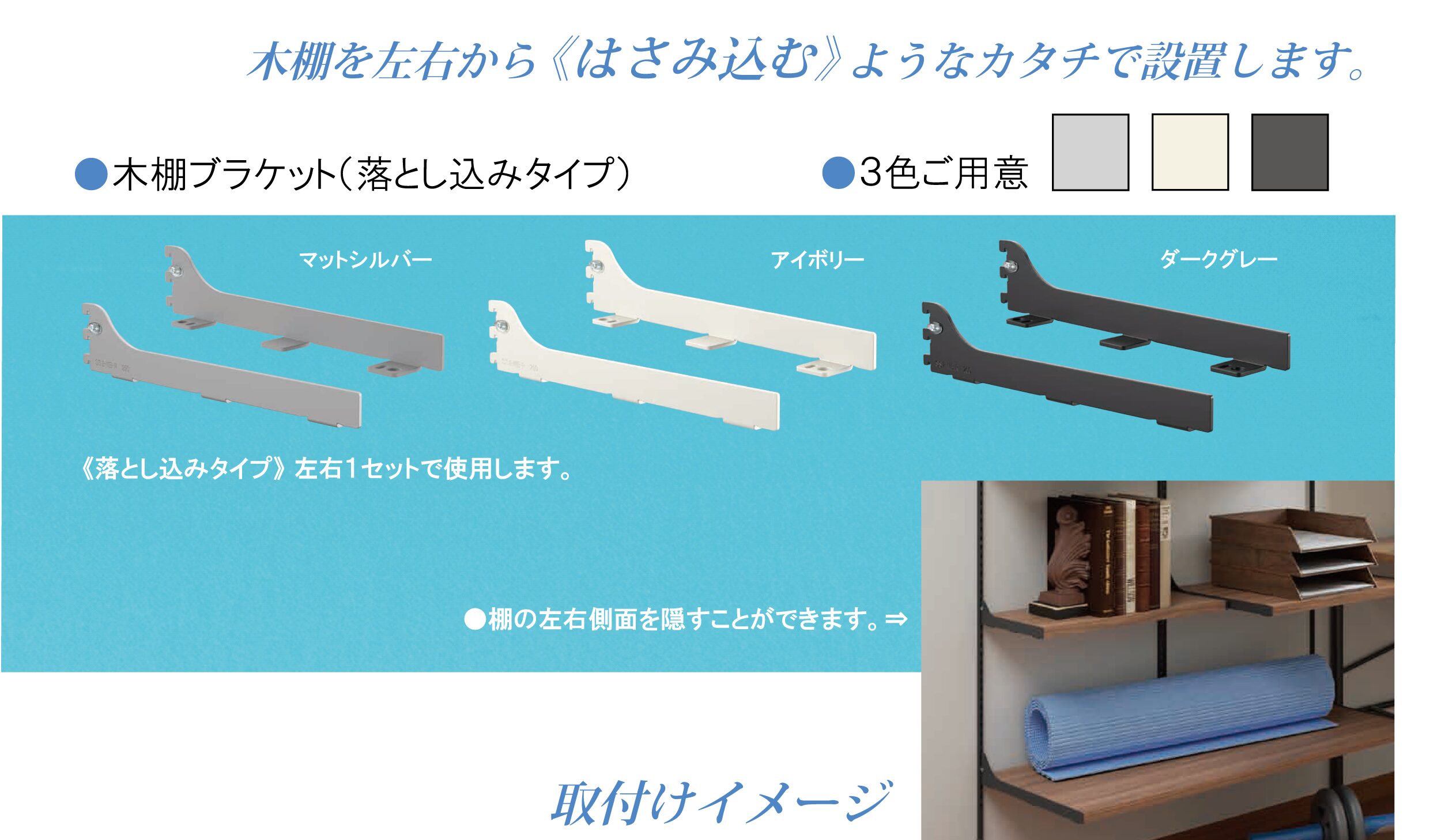 棚や洗面カウンターなどを設置する際に使用する金具です。